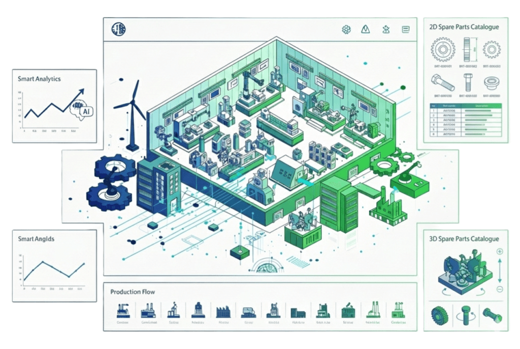 Yedek parça yönetimi ve satışına yönelik, etkileşimli yedek parça katalogları içeren web portalı